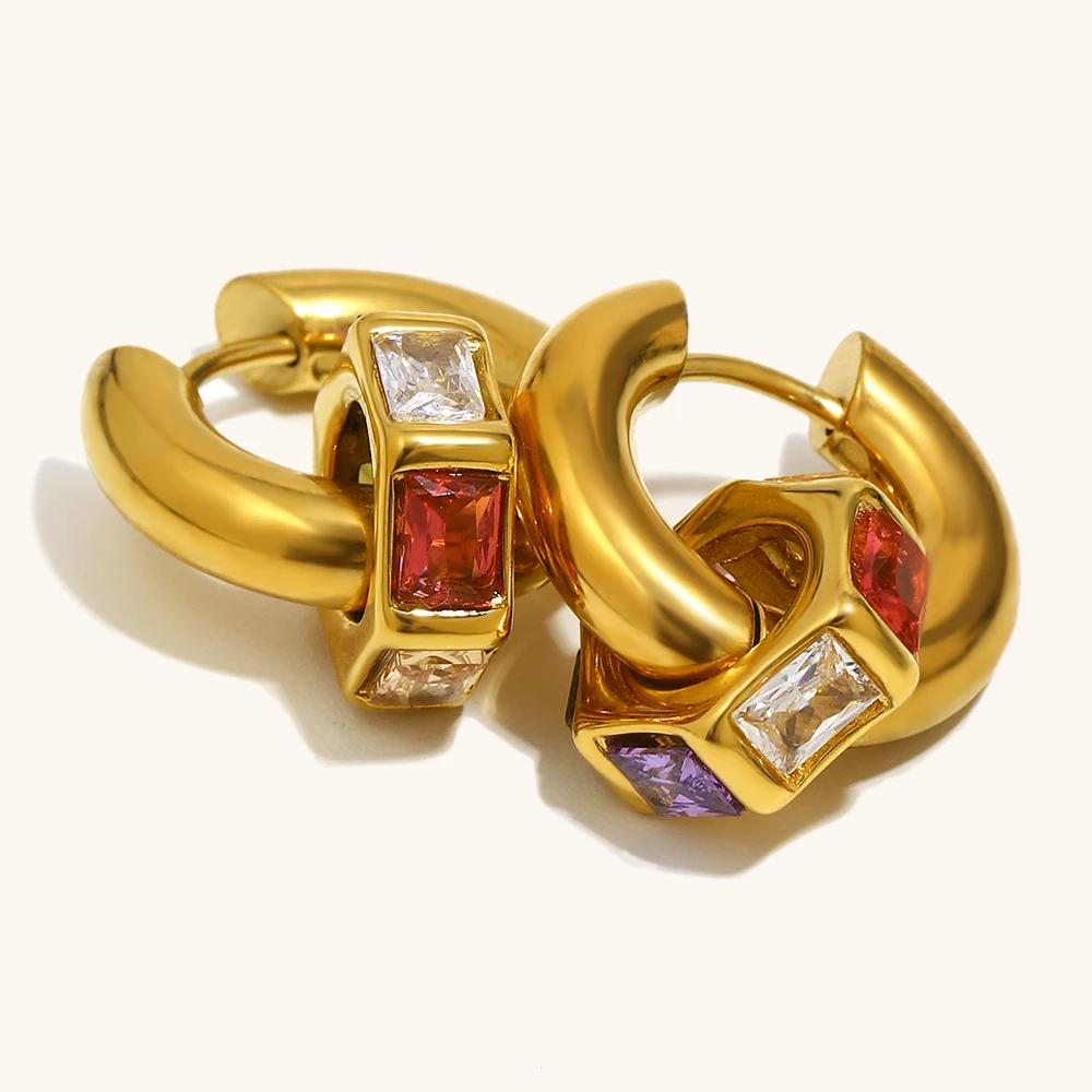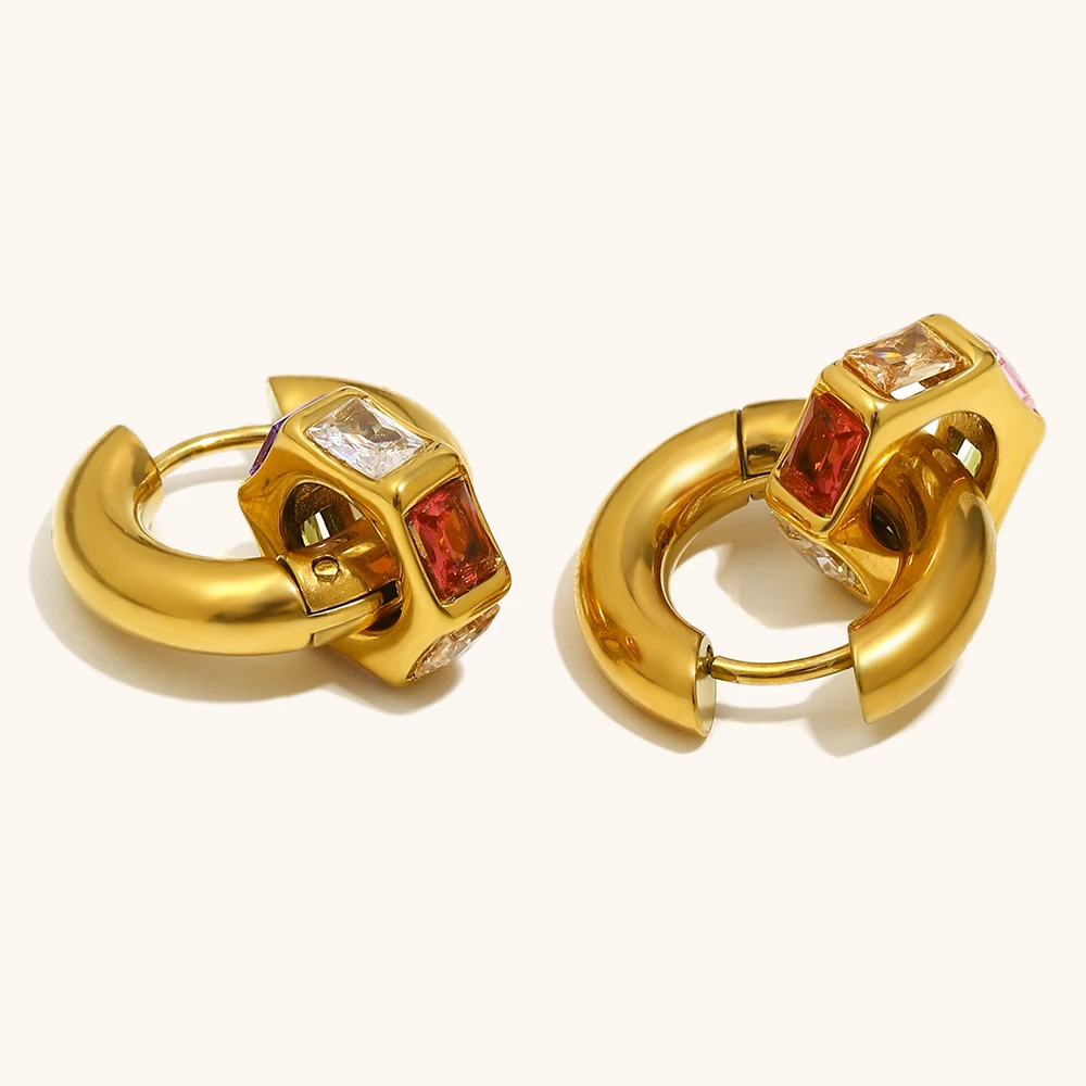 Elevate your everyday "ear stack" with a touch of architectural elegance. Moving away from the conventional round hoop, our Hexagon Clicker Hoops introduce a bold, geometric silhouette that frames the face with contemporary edge. Each facet is meticulously handset with vibrant, multi-colored AAA-grade Cubic Zirconia, capturing the light from every angle like a prism. It’s a piece designed for those who seek "Quiet Luxury"—sophisticated, intentional, and unmistakably premium