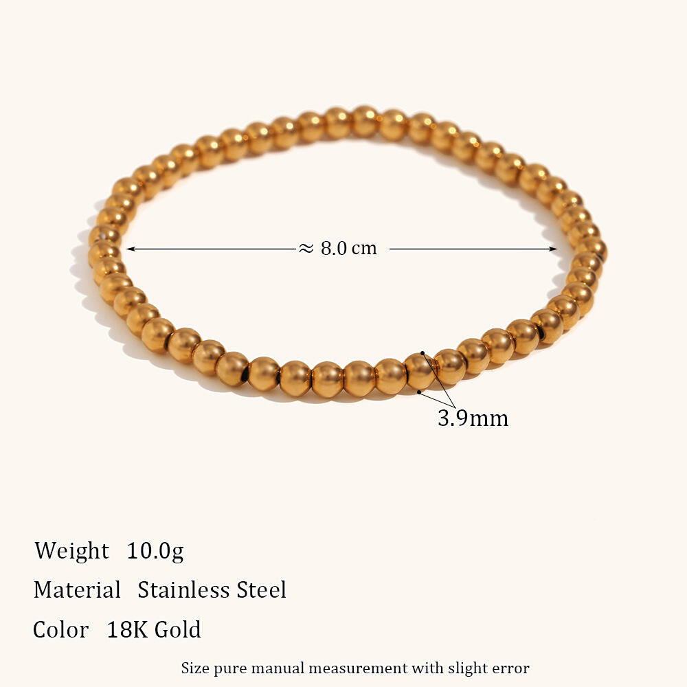 The visual allure of the B0364 is driven by its high-mirror reflective surface. The 3.9mm bead size is a calculated "Sweet Spot" for the Western market—substantial enough to catch the light and provide a visible "Liquid Gold" effect, yet refined enough to be layered with watches, leather bands, or gemstone bracelets without appearing bulky. The internal high-tension elastic cord is engineered for a "Snap-Back" memory, ensuring the bracelet maintains its ≈8.0cm diameter through thousands of stretch cycles without losing its original tension or becoming loose. This ergonomic design addresses the "easy-on, easy-off" demand of the modern professional woman who values efficiency and comfort as much as aesthetic polish.